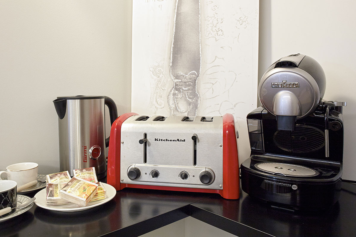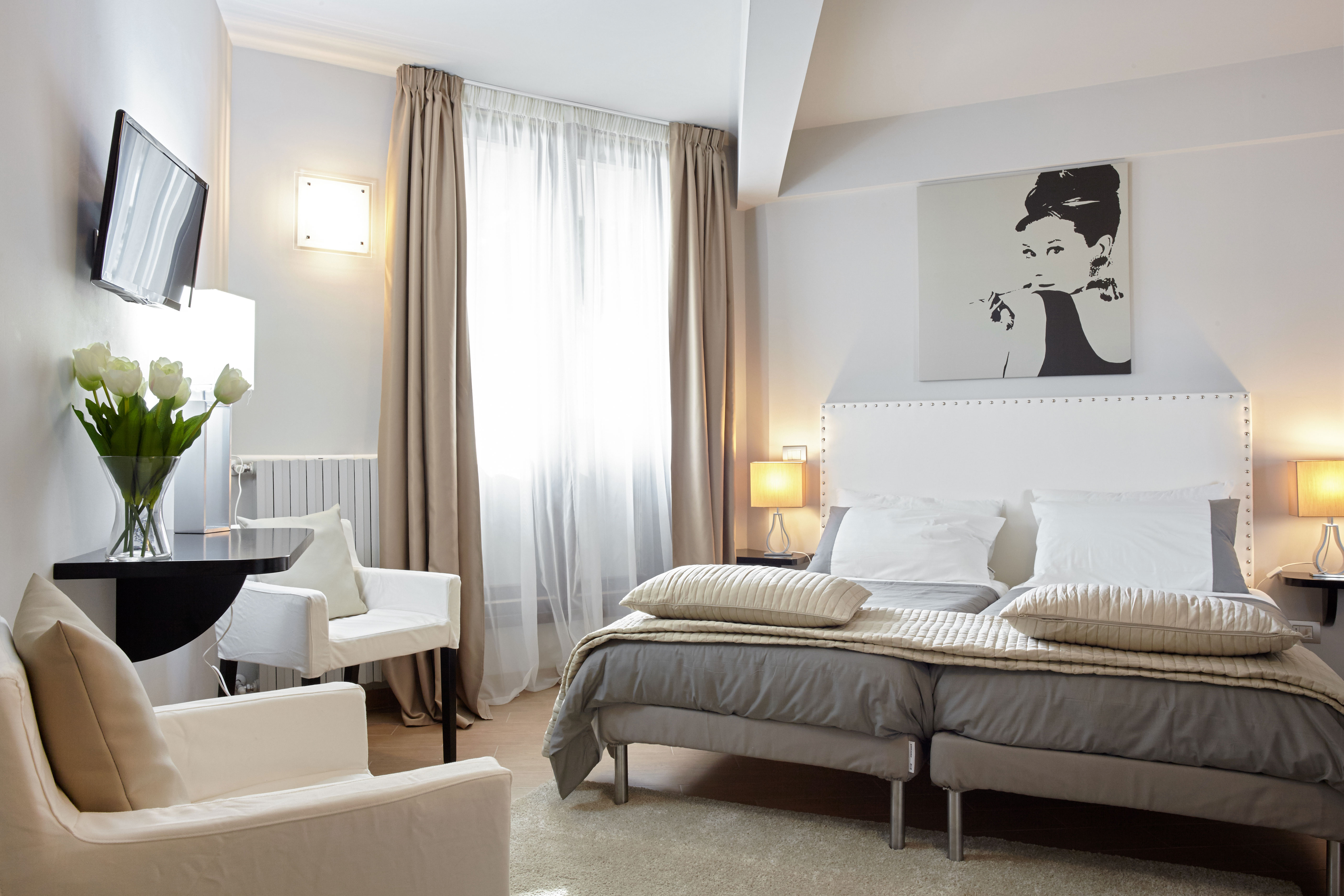 La CAMERA III è ampia luminosa con una grande finestra che si affaccia alla città. Vi è un angolo poltrone, ai piedi del letto con scrittoio ed un’elegante sedia moderna. Il bagno ha un’ampia doccia, curato nei dettagli.
